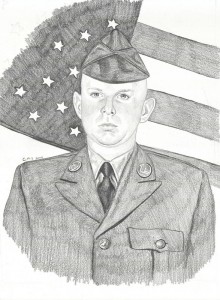 The Portrait of a Soldier exhibit is a traveling display of hand-sketched portraits of fallen servicemembers from Illinois who have been killed since September 11, 2001 in the Global War on Terror. Artist Cameron Schilling, of Mattoon, drew the first portrait in August 2004, after Army SPC Charles Neeley, also of Mattoon, was killed in Iraq. Schilling gave the sketch to SPC Neeley’s parents to convey his sympathy for their loss. In October 2005, while a student at Eastern Illinois University, Schilling decided to draw a portrait of every Illinois servicemember who has fallen during the Global War on Terror.